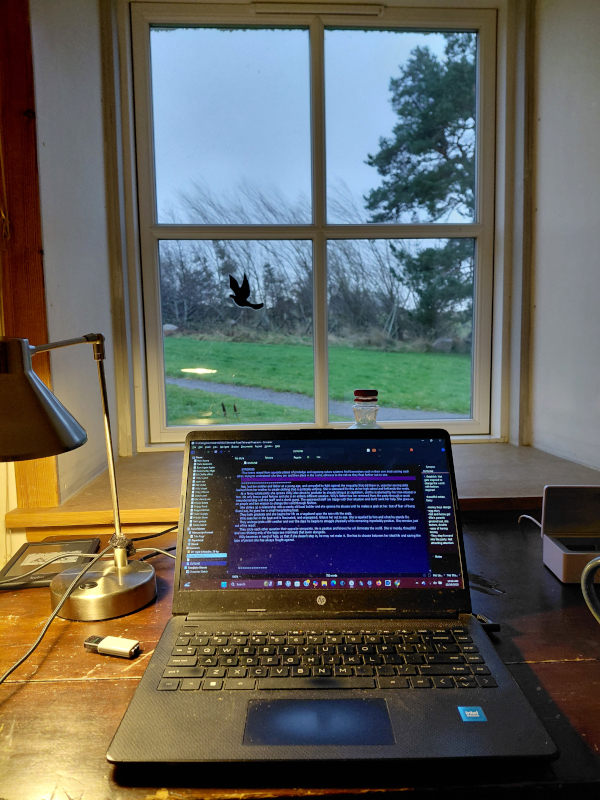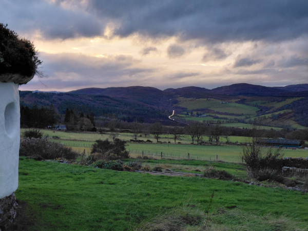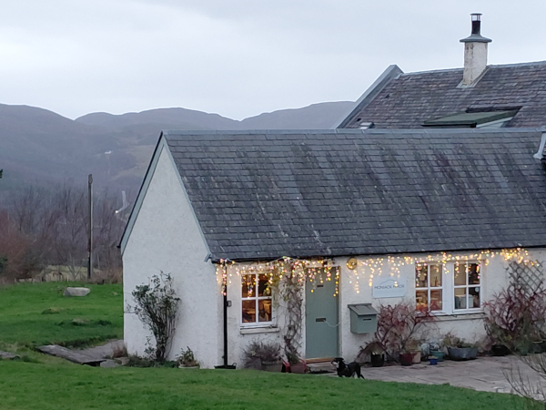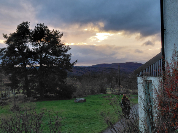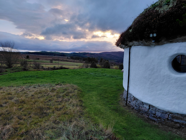 I was delighted to come across the possibility of 5 days at a fiction retreat just north of Inverness (in-ver-NESS) and promptly signed up for the last available spot with two accomplished authors and tutors, Louise Welsh and Zoë Strachan. This was time to spend working on our own projects in converted croft and cattle buildings and the straw-bale ‘Hobbit House’; enjoy a potluck fellowship of writers (most of them Scottish and returners) and brave the restless cinematic weather of the rolling hills during the reduced high latitude daylight hours of 8:30 AM - 3:30 PM in December.